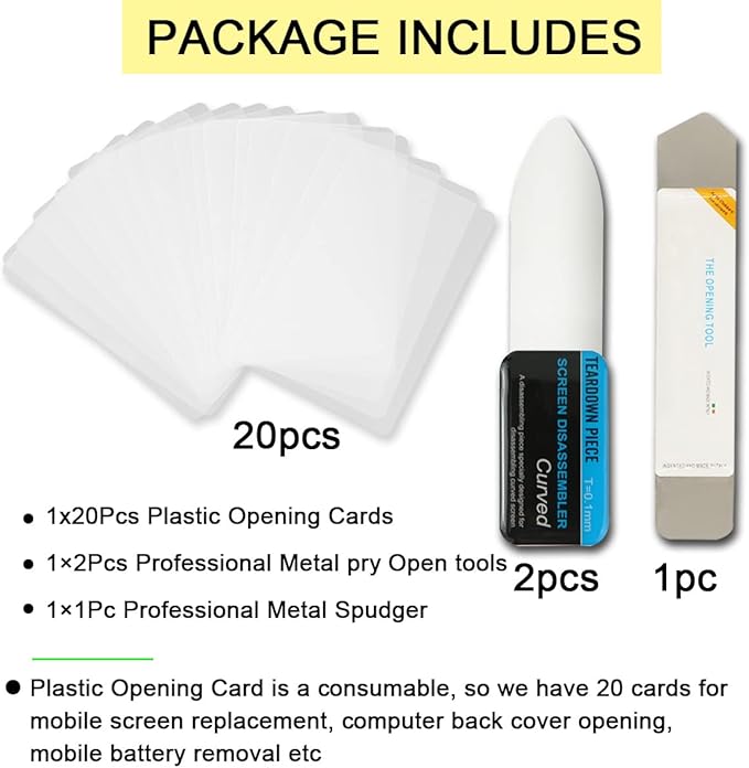 ✔【Ideal for curved screen replacement】Professional Tool for replacing Batteries, Touchscreens, LCD, Covers, Spareparts etc. Ideal for curved screen replacement, It is an important accessory of repair tools, which can pry open the screen without damaging the screen.