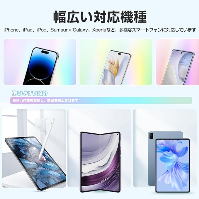 4. 幅広い対応機種iPhone、iPad、iPod、Samsung Galaxy、Xperiaなど、多様なスマートフォンに対応しています。汎用性が高く、一台で多くの機種をカバー可能です。