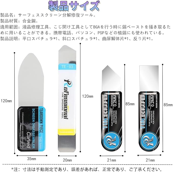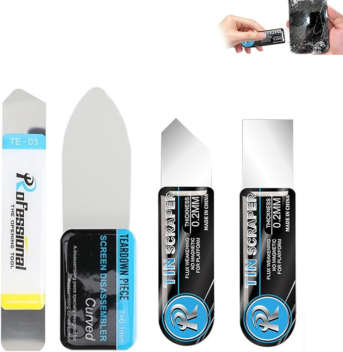 KASELIN 携帯電話修理ツール 4点セット 曲面スクリーンを分解修復ツール 0.1mm 金属製 超薄型 柔軟 スマホ修理ツール スマホ 分解 修理ツール 修理ツールキット LCDスクリーン スパッジャー 携帯、iPod、iPad等修理用ツール スマホ分解工具