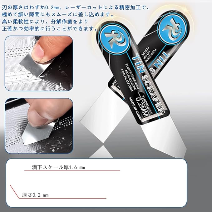 【超薄設計・精密な作業が可能】刃の厚さはわずか0.1mm。レーザーカットによる精密加工で、極めて細い隙間にもスムーズに差し込めます。高い柔軟性により、分解作業をより正確かつ効率的に行うことができます。