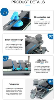 カメラエリア:ツールには携帯電話のカメラを配置するための特別なエリアがあり、分解プロセス中のカメラへの損傷を効果的に回避できます。