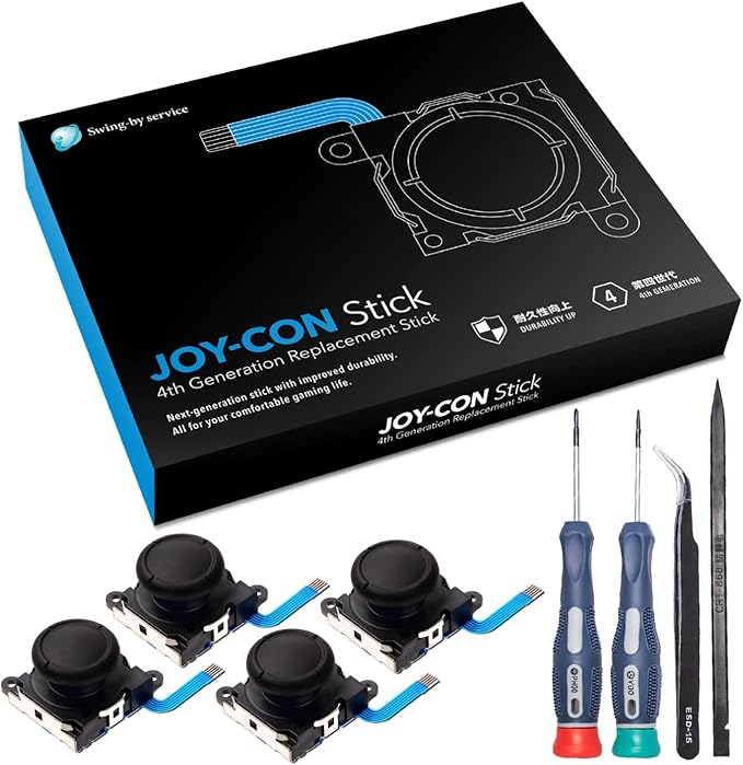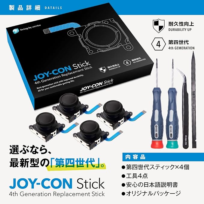 【サクラチェッカー合格 国内修理店商品・第四世代】スイッチ ジョイコン修理キット スティック4個・工具4点(修理マニュアル付き)Switch/Switch 有機ELモデル対応 ジョイコン修理 Swing-by serviceオリジナル修理キット