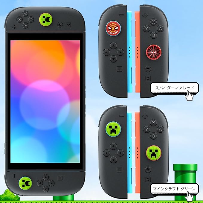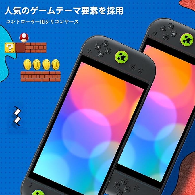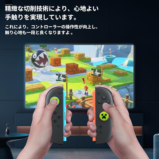 【4個セット】For Switch 2/Switch 2 Pro スティックカバー Mocasa アナログスティックカバー スイッチ ジョイコン 保護カバー ボタンカバー 耐衝撃 滑り止め 可愛い おしゃれ 修理 交換 純正(マインクラフト グリーン)