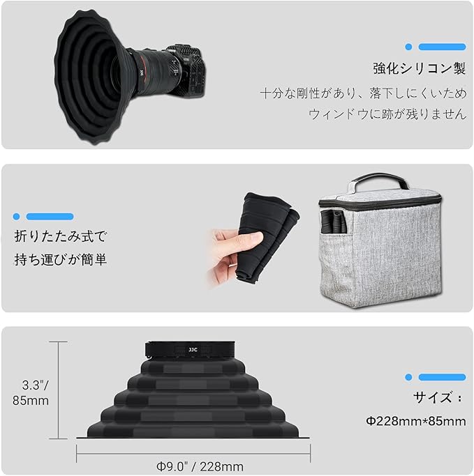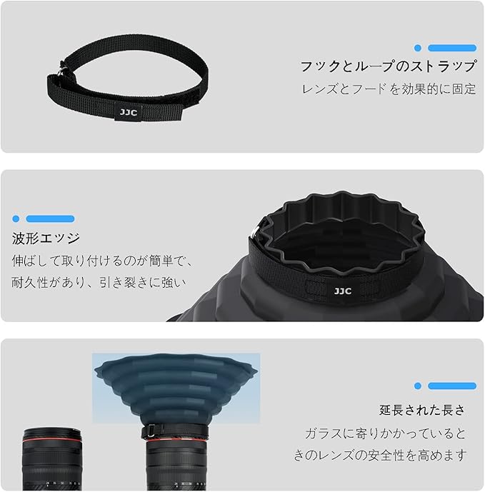 【アップグレード版】JJC シリコンレンズフード 夜景撮影 窓ガラスの映り込みを防止 カメラ用レンズフード 簡単装着 柔軟性 水洗い 外径73mm~88mm レンズに対応
