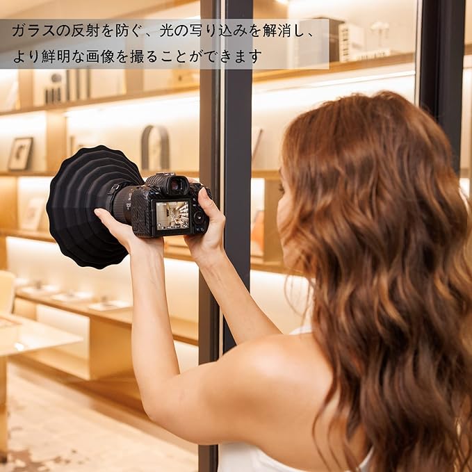 【アップグレード版】内側のホールが波状のデザインを採用しており、レンズの取り付けが容易になり、取り付け中に破れにくくなっています。拡張されたシリコンのデザインにより、ガラスに寄りかかって撮影するときにレンズに触れにくくなり、レンズの保護が強化されます。