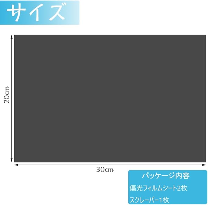 BOCAIDHK 偏光フィルムシート 20x30cm 粘着偏光子液晶スクリーン 教育物理学 写真撮影用 線形偏光フィルター (2枚入り) スクレーパー付き