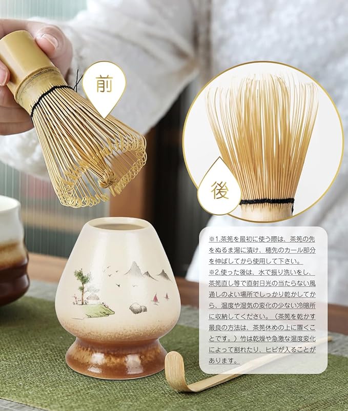 【シンプルな素材】この抹茶ツールセットは抹茶初心者やアマチュアに最適な、抹茶作りに欠かせないツールがほぼすべて揃っています。高品質のセラミックと竹の素材で作られています。すべての素材は自然で毒性がなく、安全で信頼性の高い方法で使用できます。エッジ処理は繊細で滑らかに磨かれ、形はシンプルです。
