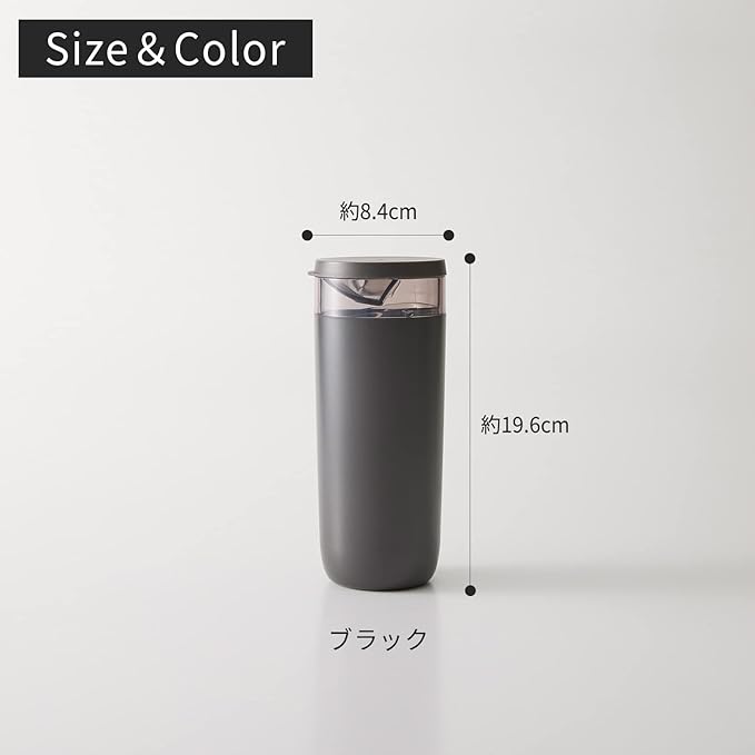 【材質】本体・計量パーツ:ABS樹脂、フタ:ポリエチレン【耐熱温度】60℃【サイズ】約8.4 19.6 8cm【容量】 約520mL【生産国】中国