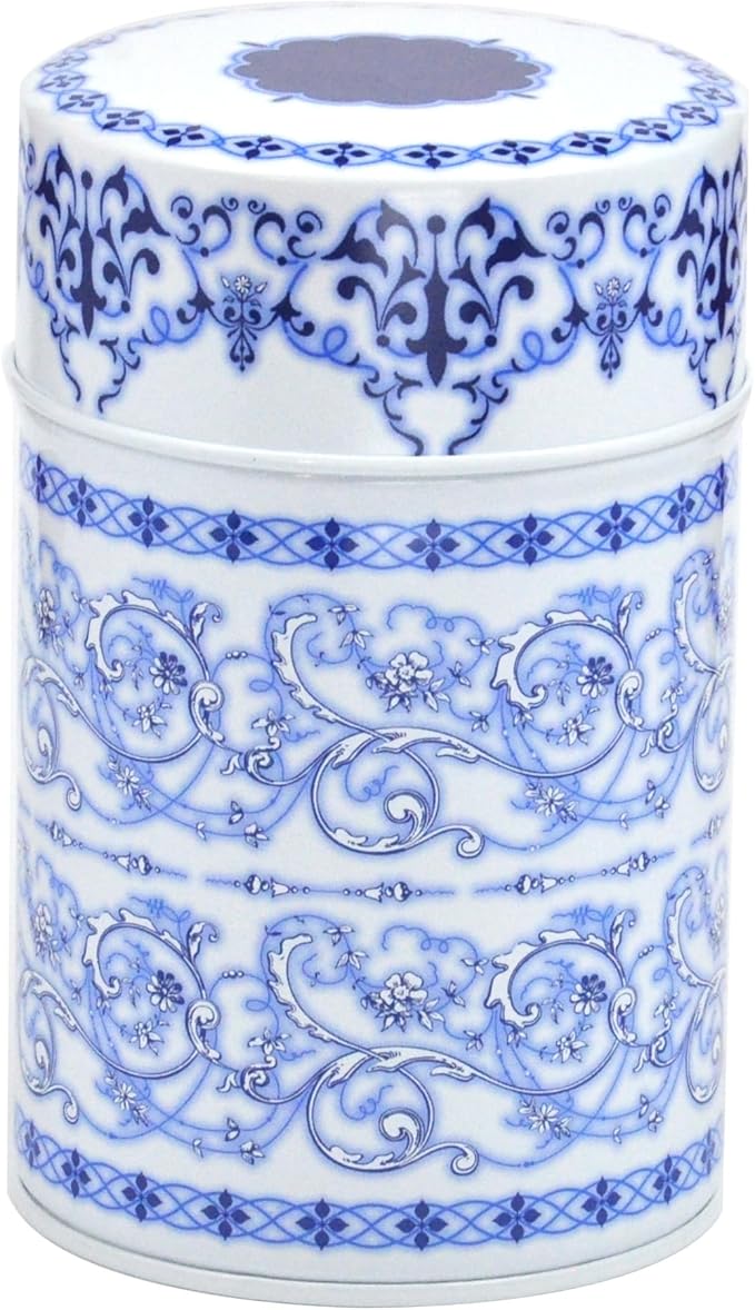 高級感溢れる白磁色の缶にロイヤルブルーの華やかな柄で彩ったキャニスター・保存缶です。美しいデザインと機能性を兼ね備えており、贈り物としても最適です。