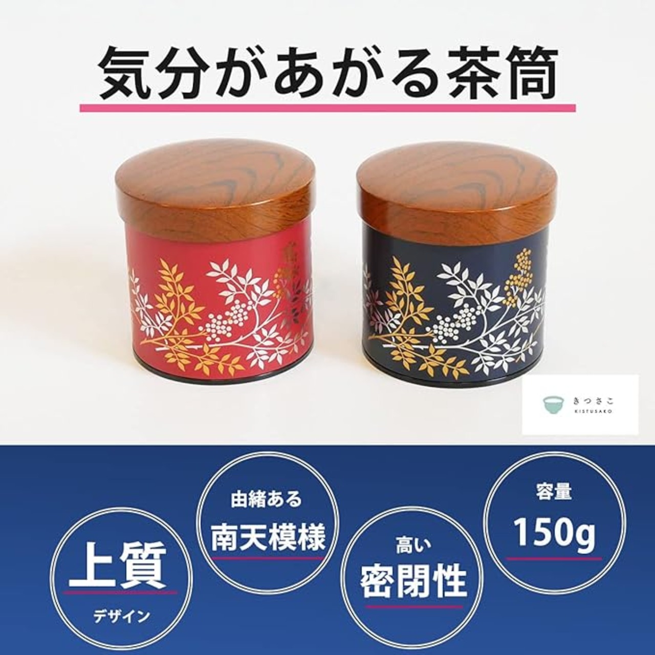 南天茶筒 茶缶 日本製【オシャレ で 映える/容量 150g 】 可愛い キャニスター ステンレス 茶葉 お茶 緑茶 紅茶 きつさこ (赤)