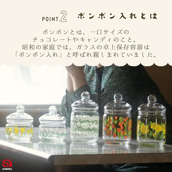 アデリア(ADERIA) 【 アデリアレトロ 花の輪 ボンボン入れ 360 化粧箱入 日本製 1933 】 保存容器 昭和 レトロ ガラス キャニスター 密閉 容器 調味料入 瓶 密閉 コーヒー豆
