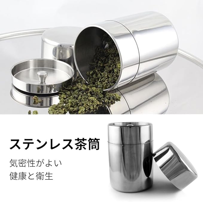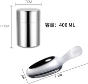 茶筒:この400 mlの茶筒は高品質ステンレス材質を採用し、耐久性があり、清潔性があるだけでなく、優れた密封性能を提供している。この茶筒はスプーンが内蔵されており