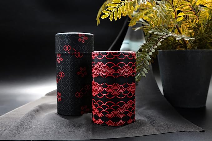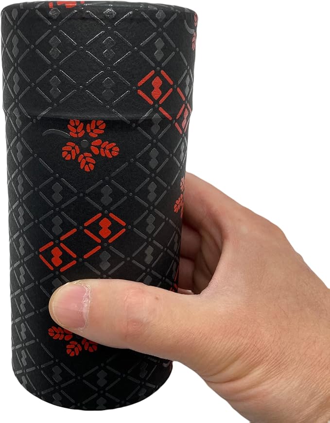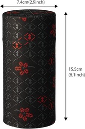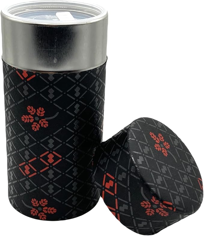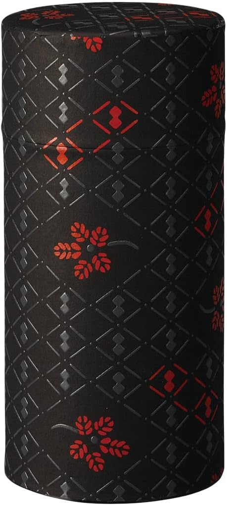 野口熊太郎茶園 茶筒 茶缶 大容量 200g 和紙貼 中蓋付き 印傳(印伝)ひょうたん柄 黒 日本製 おしゃれ