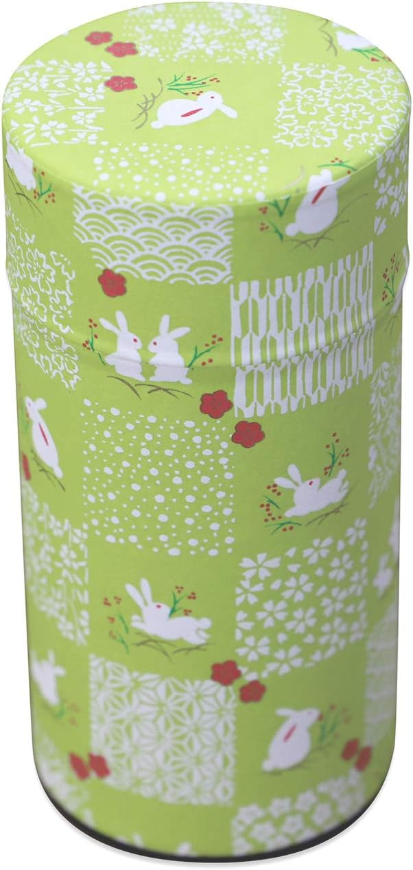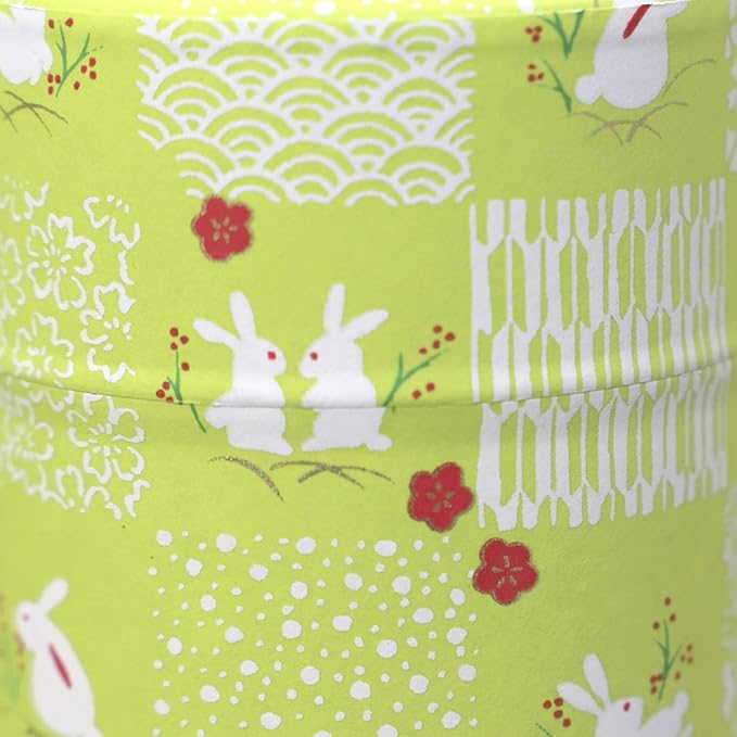 京都活具(Kyoto Katsugu) 和紙張り 茶缶 茶筒 日本製 (黄緑地うさぎ市松)