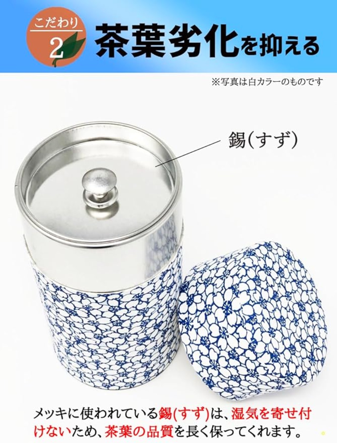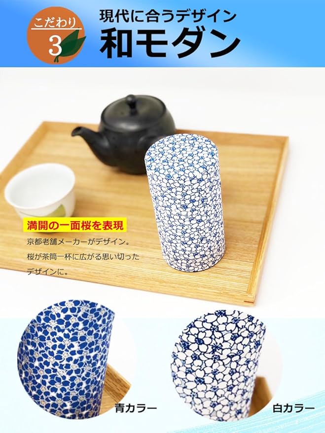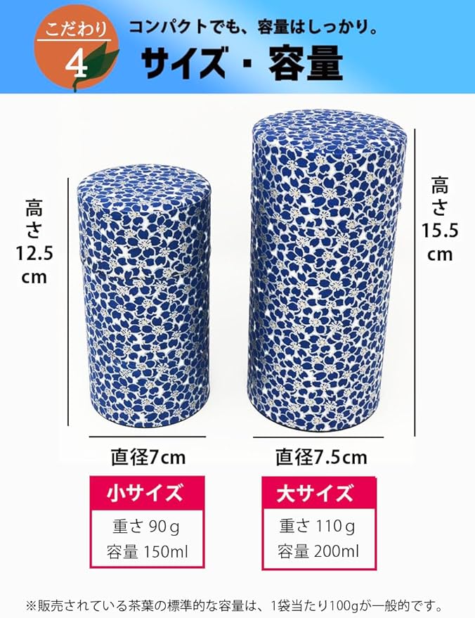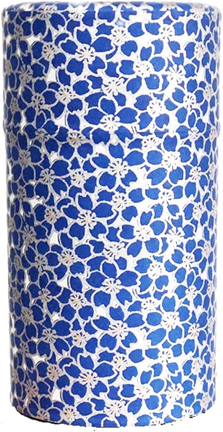 きつさこ 京都生まれの友禅紙茶缶 桜柄【 茶葉の劣化を抑制する 】 / 茶筒 茶缶 茶入れ 茶壷 保存容器 (青(150g))