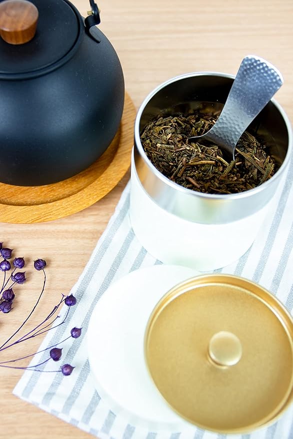 通年同じ使用感を保て、遮光性のあるブリキ素材(金色)の中蓋付き