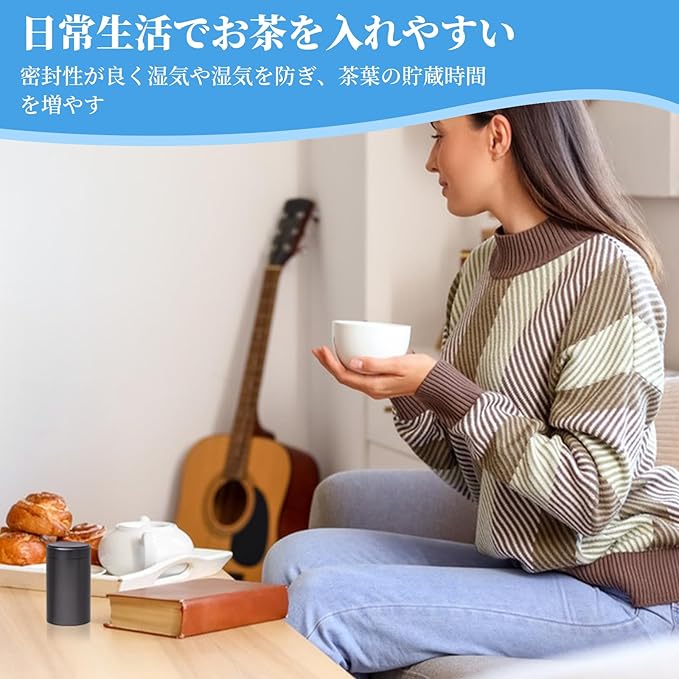 【 高品質のチタンアルミ合金】:この茶筒は高品質のチタンアルミ合金で作られており、防湿性と耐腐食性に優れています。 また、軽くて丈夫なので持ち運びがしやすく、毎日の家庭での使用や屋外での旅行にも適しています。