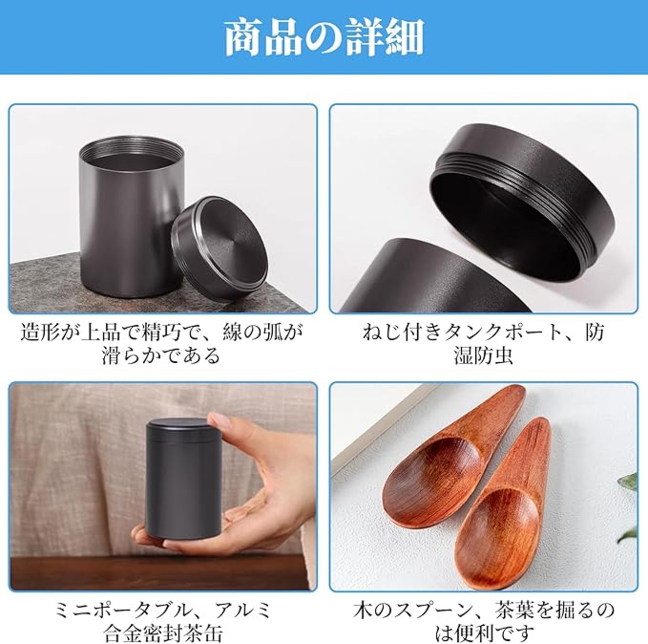 【絶妙な外観と実用的な機能】:シンプルで趣のあるフォルムの茶筒は、繊細な金属の質感があり、控えめでありながら高級感があります。 また、木製のスプーンも付属しており、お茶の出し入れがしやすく、ティータイムがさらに充実します。